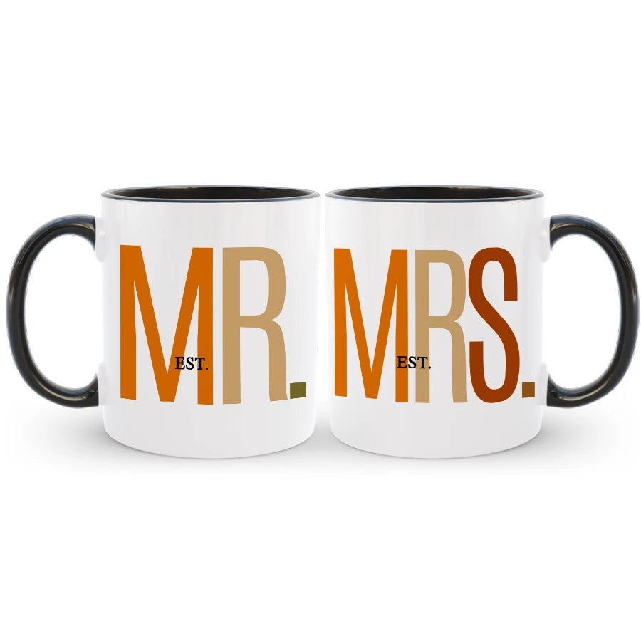 Celebrate newlyweds with our personalized Mr & Mrs Coffee Mugs. Premium glossy ceramic, microwave & dishwasher safe—perfect bridal shower gift.
