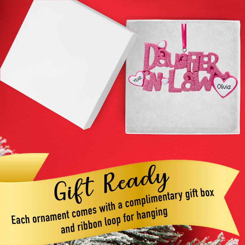 Celebrate your #1 best daughter in lawthis Christmas with ourPersonalized Daughter in Law Christmas Ornament. This unique ornament is the perfect gift for showing appreciation and love to a cherished family member. Whether it’s her first Xmas with the family or another memorable holiday season, this personalized ornament is sure to make her feel special. Crafted from premium polyresin, this customizable ornament allows you to add her name, the year, or a personalized message, turning it into a meaningful keepsake that will be treasured for years.