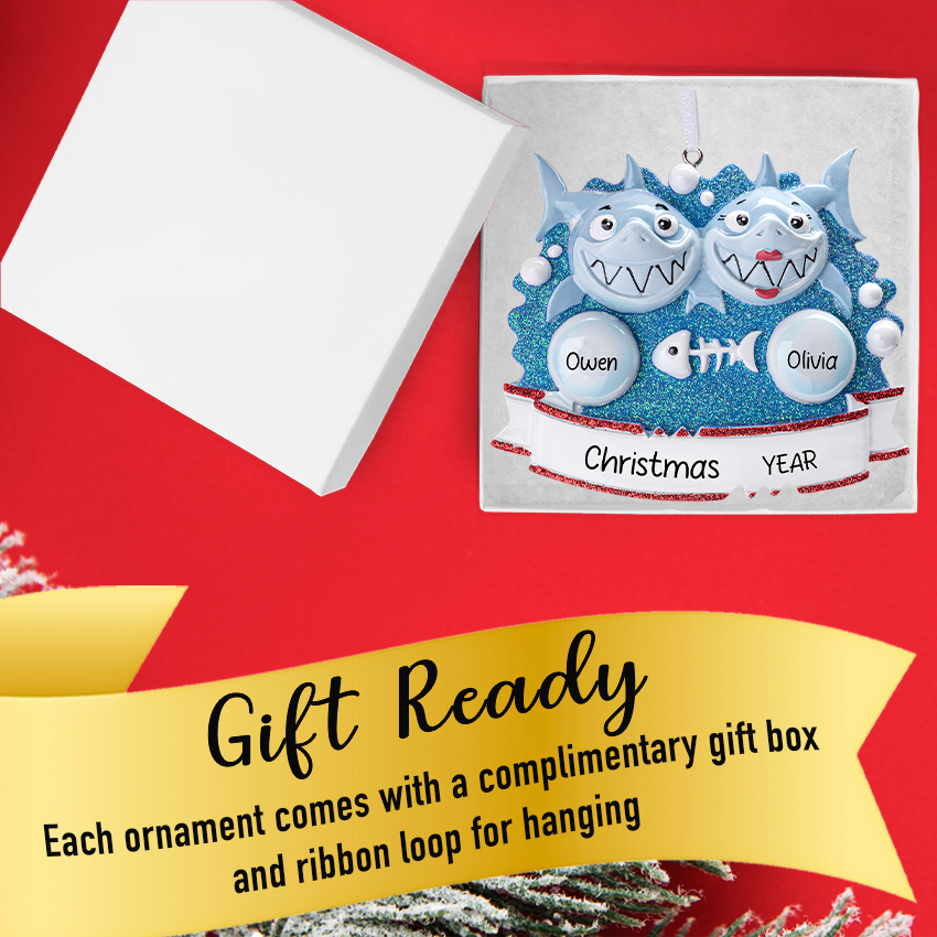 Celebrate your love story with a fintastic keepsake that makes every glance at the tree a splash of joy! 🦈❤️