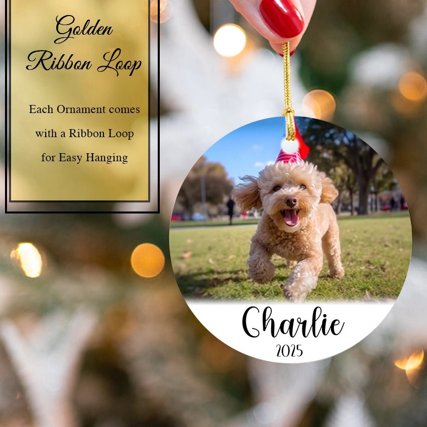 Celebrate your furry friend with a personalized dog photo ornament. Turn a favorite picture of your pet into a cherished keepsake. Customize with their name!