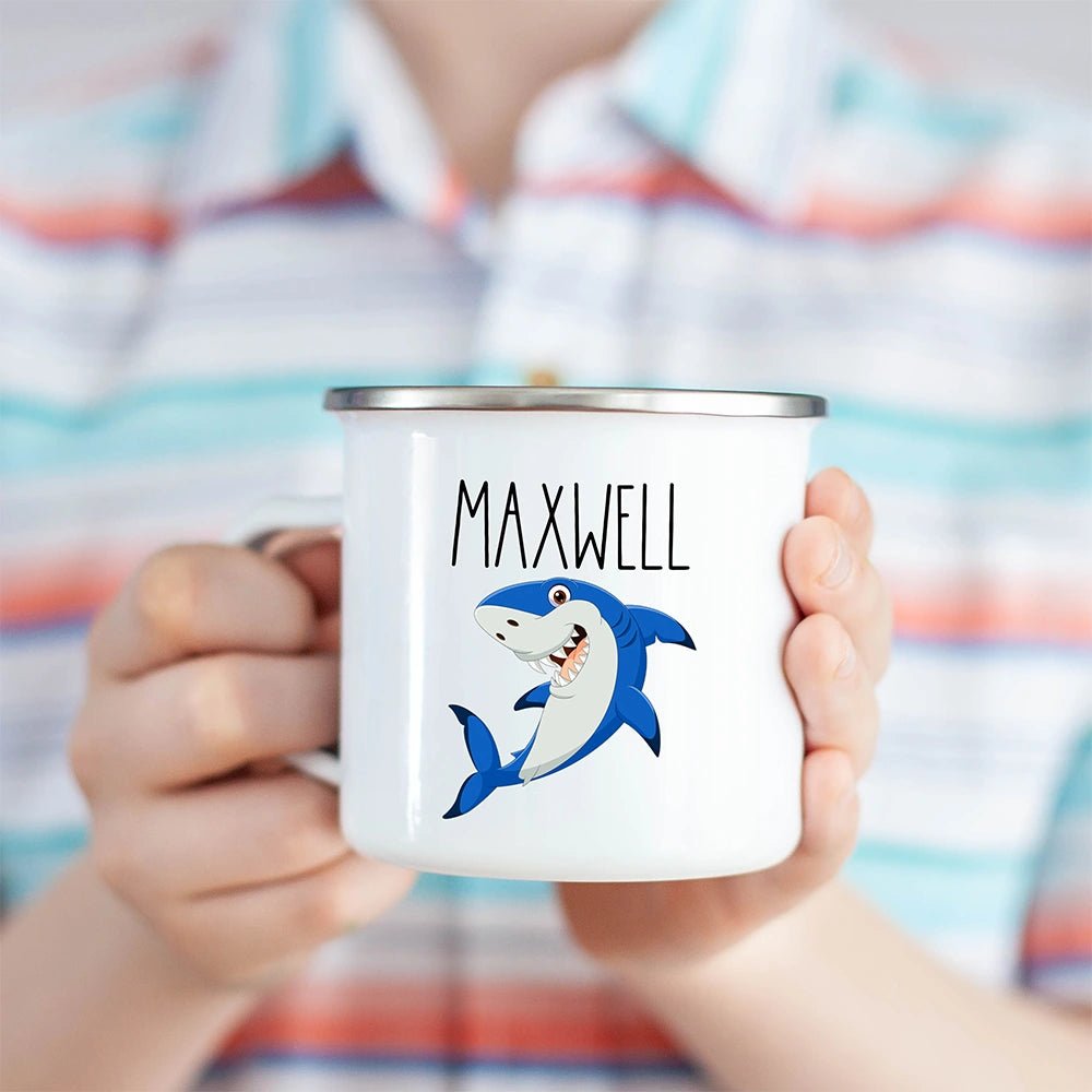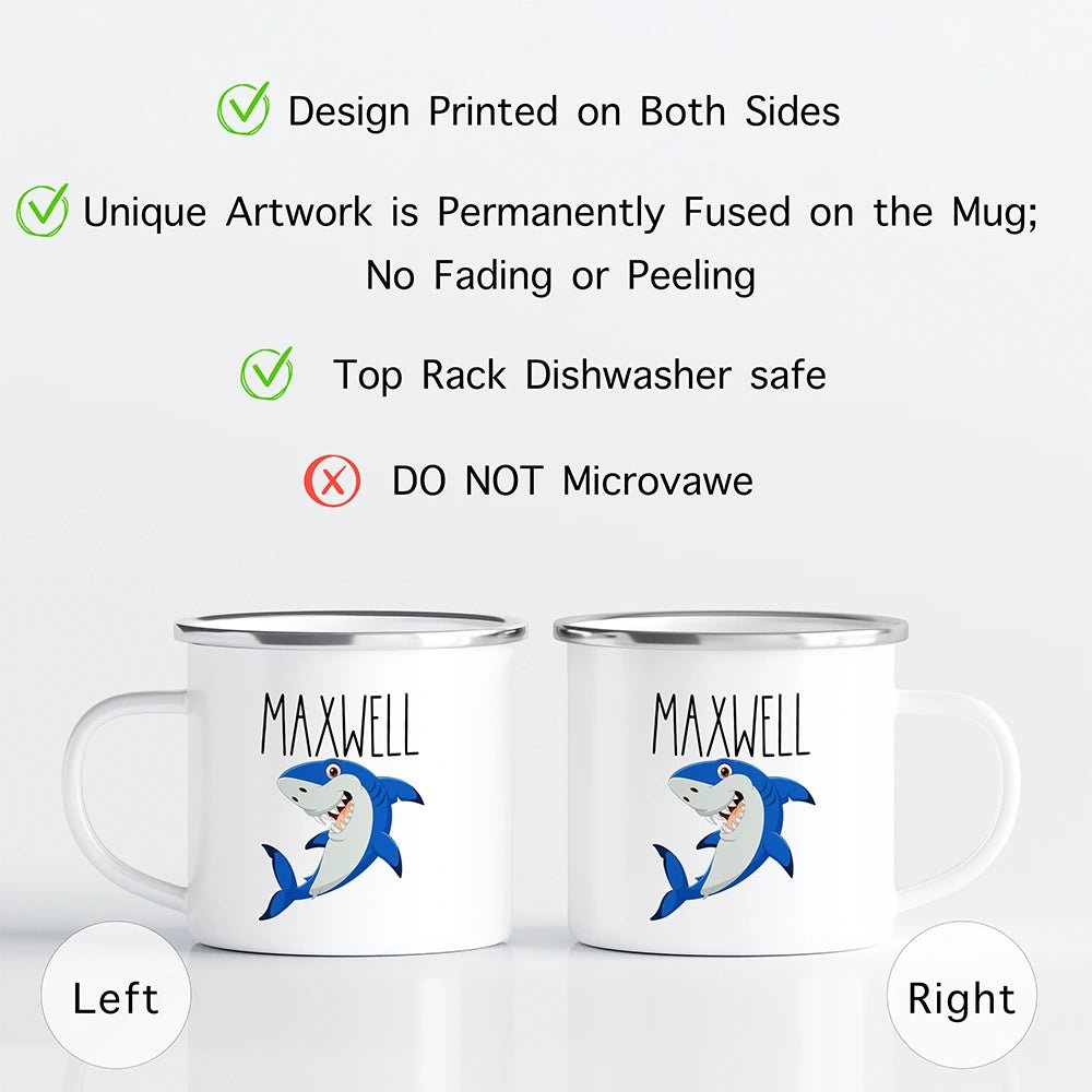 Delight your little ocean explorer with every sip from this customized kids hot chocolate mug. Crafted from shatterproof, enamel‑coated stainless steel, the Shark Hot Chocolate Kids Mug features dynamic shark artwork printed on both sides and a glossy finish that won’t peel, fade, or crack. Personalize it with their name or a fun message to create a treasured personalized kids mug that’s built for boys & girls.